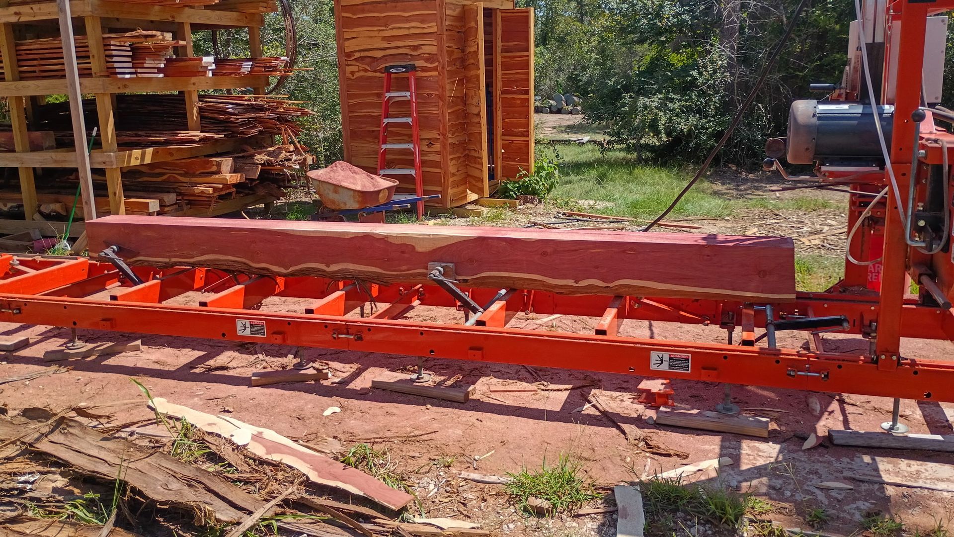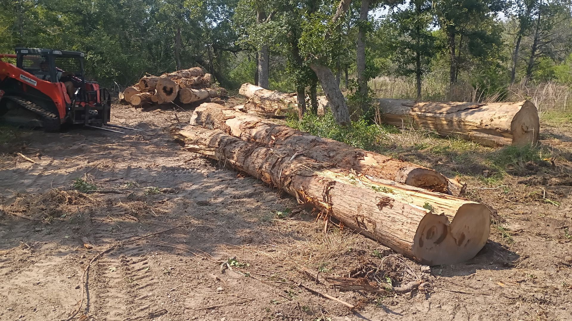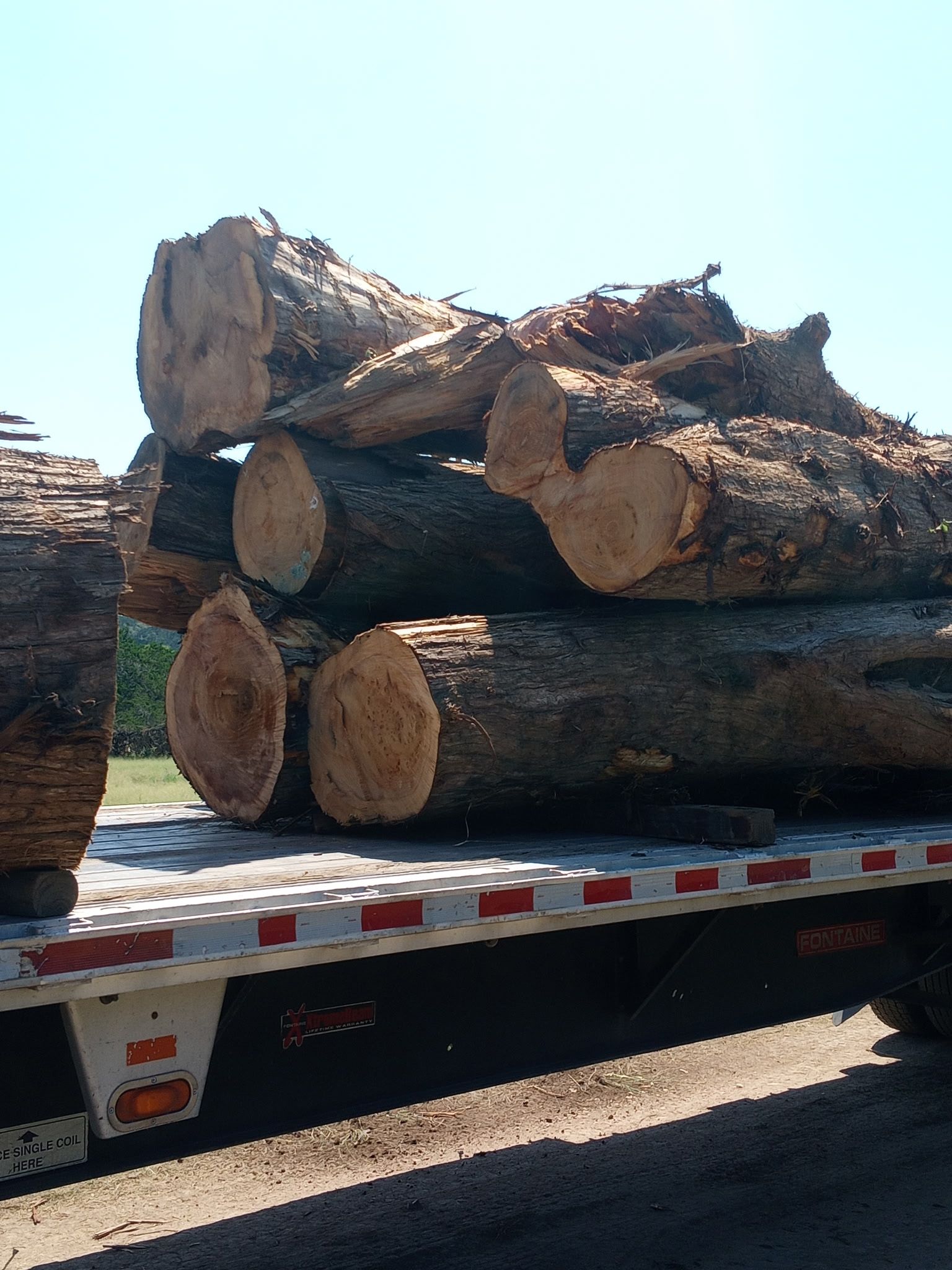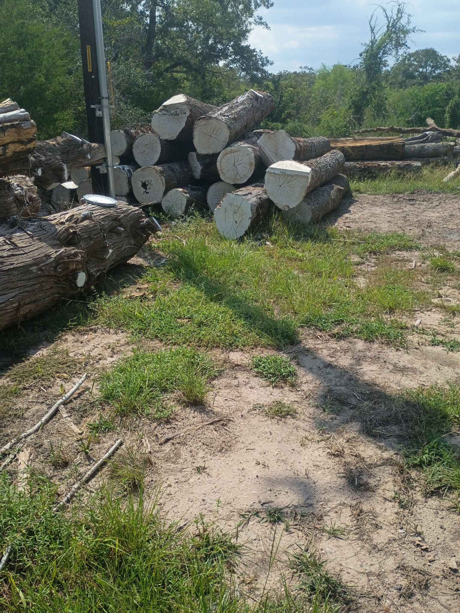 These logs have now been transported to our sawmills in College Station, TX. With three mills—including one capable of cutting logs up to 4 feet in diameter and 30 feet long—we are beginning the process of milling these trees into slabs. The green slabs are available for purchase now and will be ready for kiln drying in 3–6 months.